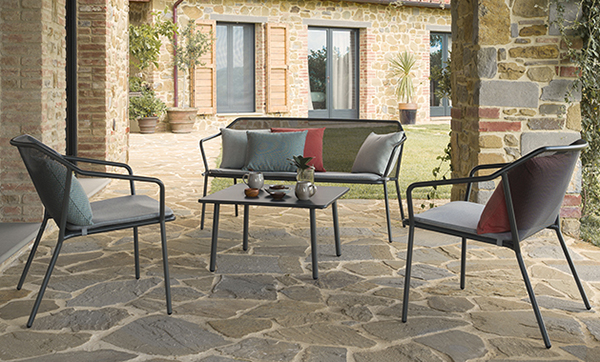 The Darwin collection is functional and simple, reintroducing classic themes by utilizing a metal sheet mesh with a contemporary geometric structure. The ergonomic proportions of the seating components guarantee both comfort and adaptability to any patio, balcony, or outdoor environment.